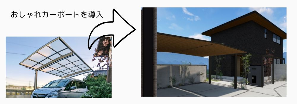 カーポートを変えるだけで、ぐっとおしゃれになります。個人的なおすすめはリクシルのカーポートSC。カラーも複数から選べます。