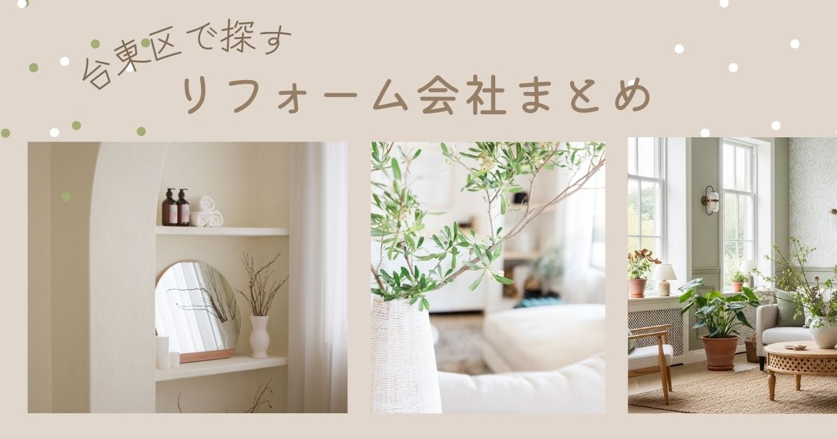 台東区は古い住宅やマンションが多く、「レトロ × モダン」「狭小住宅」「木造密集地域の耐震対策」などに強いリフォーム会社が集まるエリアです。